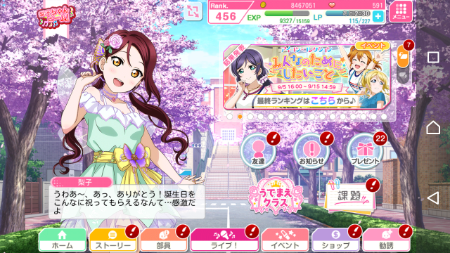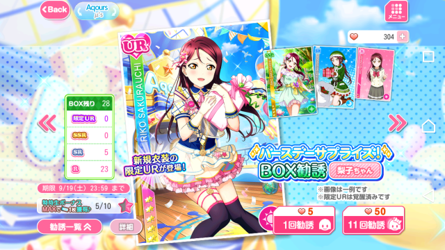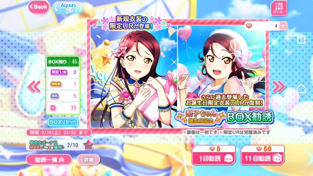もう長らくスクフェスのトップは桜背景に梨子ちゃん固定です。