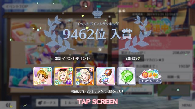 前回より大幅にボーダーが下がったみたいで10000位に入れました。