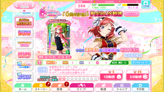 初回ガチャが梨子ちゃんURだったのでこれでGOすることに。
