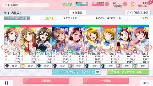 ユニットがある程度強くないとスタミナ切れで曲がクリアできないという。