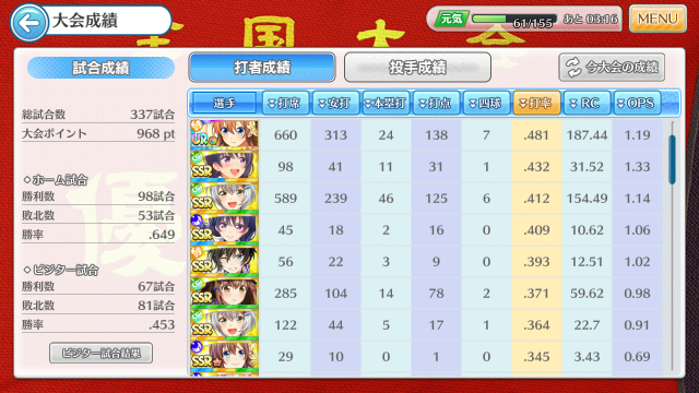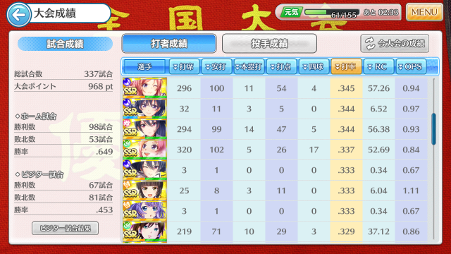 まずはイベURとは言えそこはUR。有原が打率1位。