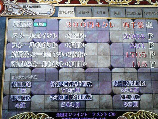 1位と1点差だったのでくやしいですなぁ。