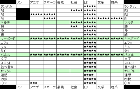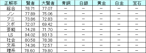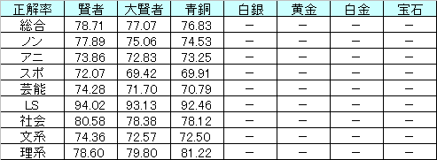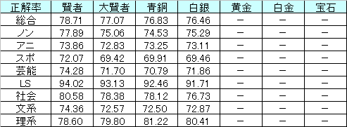 一応前作の正解率を下回ってるジャンルはありませんが、