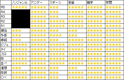 決勝 アニR4→雑R5→学順 なぜかアニR4で単独2問取って助かりました。優勝