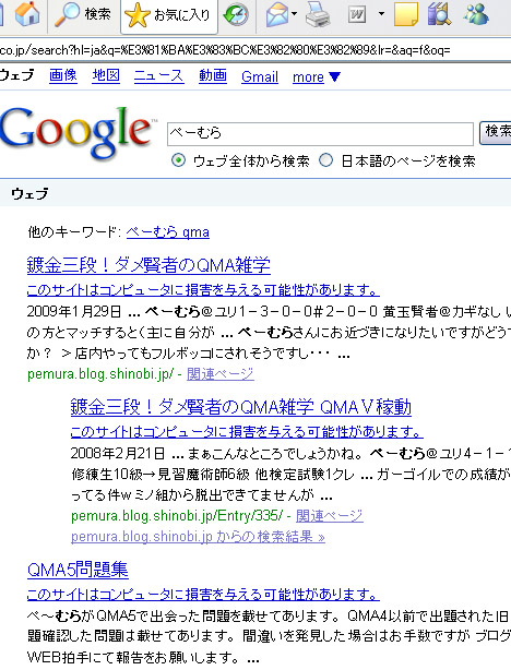 いつの間にかうちのサイトは有害サイト扱いになってたらしいです><