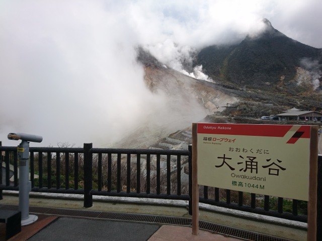 大涌谷の駐車場まで最後の1kmが渋滞でかかったのは1時間ちょい。