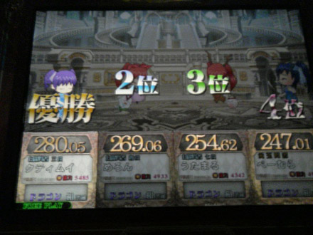 2位(3ポイント)+4位(0ポイント) = 3ポイントで1落ちでした。