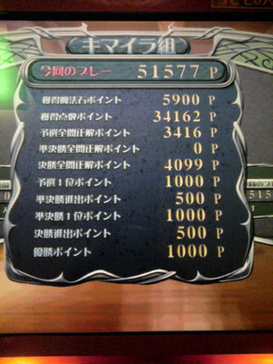 いやー優勝ポイント=1000P、(ゲームの中の)10点=(今回の)1000P。
