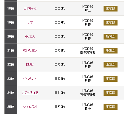 賢王(21位)までは16点でした。