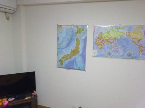 手元が狂うと隣の世界地図のアフリカとかに刺さる恐れが(